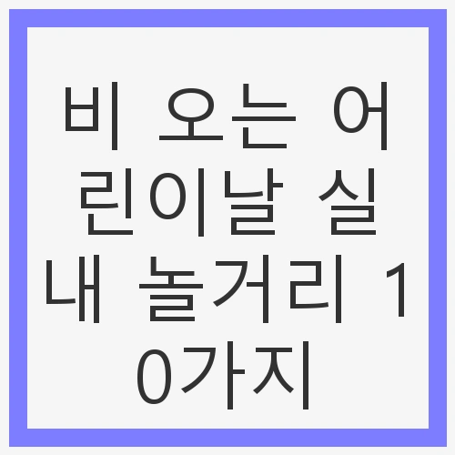 안녕하세요! 어린이날의 기쁜 날이 비와 함께 찾아왔네요. 아이들이 밖에서 뛰어놀고 싶어 하지만, 비가 오면 어쩔 수 없이 실내에서 보내야 하는 것이 현실입니다. 그러다 보니 실내에서 아이들과 함께 즐길 수 있는 재미있는 활동을 고민하게 되는데요. 이 글에서는 '비 오는 어린이날 실내 놀거리 10가지'를 소개해 드리려고 합니다. 다양한 놀거리를 통해 아이들과 함께 재미있는 시간을 보내고, 소중한 추억을 쌓을 수 있는 방법을 찾아보세요!