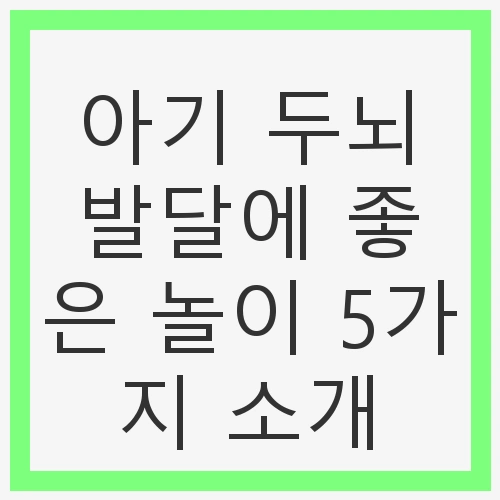 아기 두뇌 발달은 유아기 때 결정되며, 이는 아이의 전반적인 성장에 큰 영향을 미칩니다. 연구에 따르면 뇌의 80% 이상이 5세 이전에 형성되므로 이 시기에 적절한 놀이와 경험이 매우 중요합니다. 하지만 많은 부모들이 어떤 활동이 아기의 두뇌 발달에 도움이 되는지에 대한 명확한 정보를 갖고 있지 않습니다. 따라서 오늘은 아기 두뇌 발달에 좋은 놀이 다섯 가지를 소개하고, 각 놀이가 아기에게 어떤 도움을 주는지에 대해 알아보겠습니다. 이를 통해 부모님들이 아기와 함께 즐겁고 유익한 시간을 보낼 수 있도록 안내하고자 합니다.