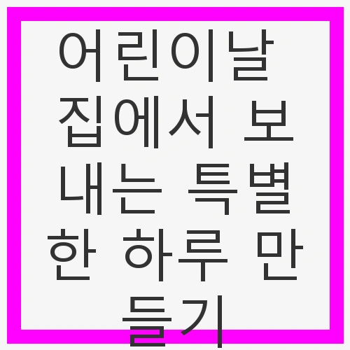 어린이날을 집에서 보내며 아이와 함께 특별한 하루를 만드는 것은 가족의 소중한 추억을 쌓는 기회가 될 것입니다. 창의적이고 다양한 활동을 통해 아이의 마음에 오래도록 남는 행복한 순간을 만들어 보세요.
