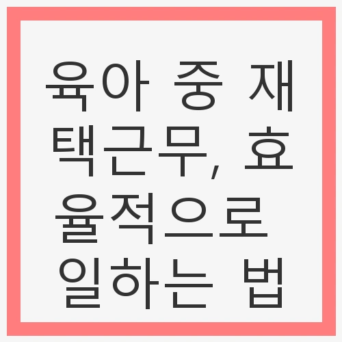 오늘부터는 자신만의 전용 작업 공간을 마련해 보세요. 육아 중 재택근무를 하면서도 높은 생산성을 유지할 수 있도록 작은 변화들을 시도해보시길 바랍니다. 이러한 노력이 여러분의 일상에 긍정적인 변화를 가져올 것입니다.